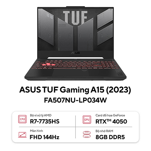 Asus TUF Gaming A15 FA507NU-LP034W : R7-7735HS | 8GB RAM | 512GB SSD | RTX 4050 6GB | 15.6 inch FHD 144Hz | Windows 11 | Xám