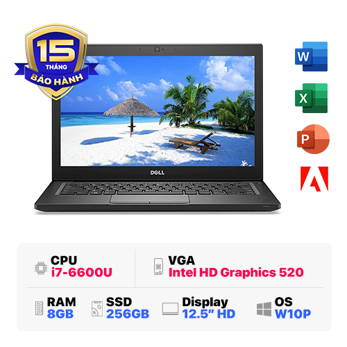 Dell Latitude 7280 : i7-6600U | 8GB RAM | 256GB SSD | Intel HD Graphics 520 | 12.5 inch HD | Led Keyboard | Windows 10 Pro | Black